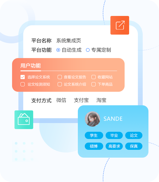 支持多個論文系統(tǒng),連接到系統(tǒng)后臺系統(tǒng)的免費集成頁,引流到各個平臺,把用戶都沉淀到自己的論文集成頁內。